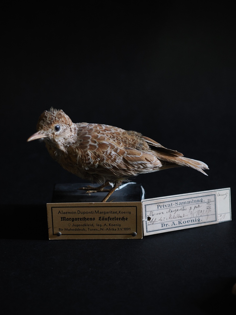 Als künstlerisches Masterprojekt konnte ich im Archiv des Naturhistorischen Museums Koenig in Bonn die Sammlung entdecken und fotografieren. Einige dieser Präparate sind mehrere hundert Jahre alt. Sie sind Zeugen der Sammelleidenschaft, Neugierde, des Ordnungswillens und der Kunst der Präparation. Vor über 100 Jahren entstand diese Privatsammlung und kann heute noch in einem Zustand vorgefunden werden, in dem das Entweder-oder des Lebendigen oder des Todes mit der Utopie des Unsterblichen vor Augen geführt wird. Diese Fragestellung, dieses Dilemma der Sichtbarkeit des Todes und der Frage nach dem Authentischen in der Fotografie, ist Grundlage dieses Werks.