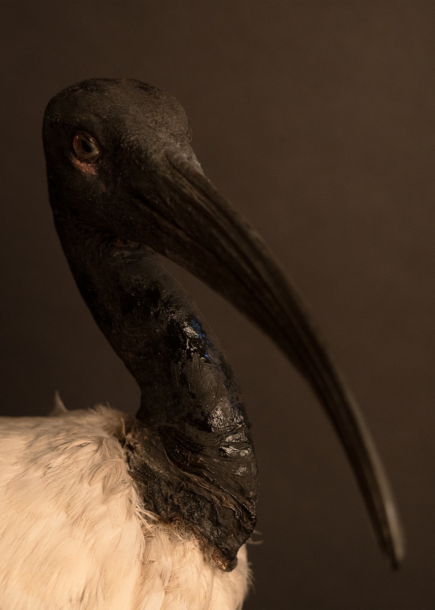 Meine Arbeit ist eine raumbezogene, hängende Installation aus insgesamt 48 Fotografien, die an einem Mobile schweben. Zur Mythologie und Faszination der Vögel wird exemplarisch der heute in Ägypten ausgestorbene Heilige Ibis gesondert vorgestellt. Als maßgebliche Pionierin für die Entstehung der Sammlung werden dokumentarische Aspekte aus dem Leben von Margarethe Koenig gezeigt.