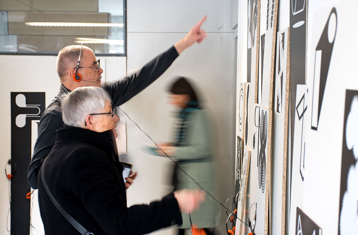 Die Klänge schallten aus Kopfhörern, verschmolzen miteinander und erfüllten den Raum mit einer einzigartigen Geräuschkulisse. Die Besucher*innen konnten an die Buchstaben