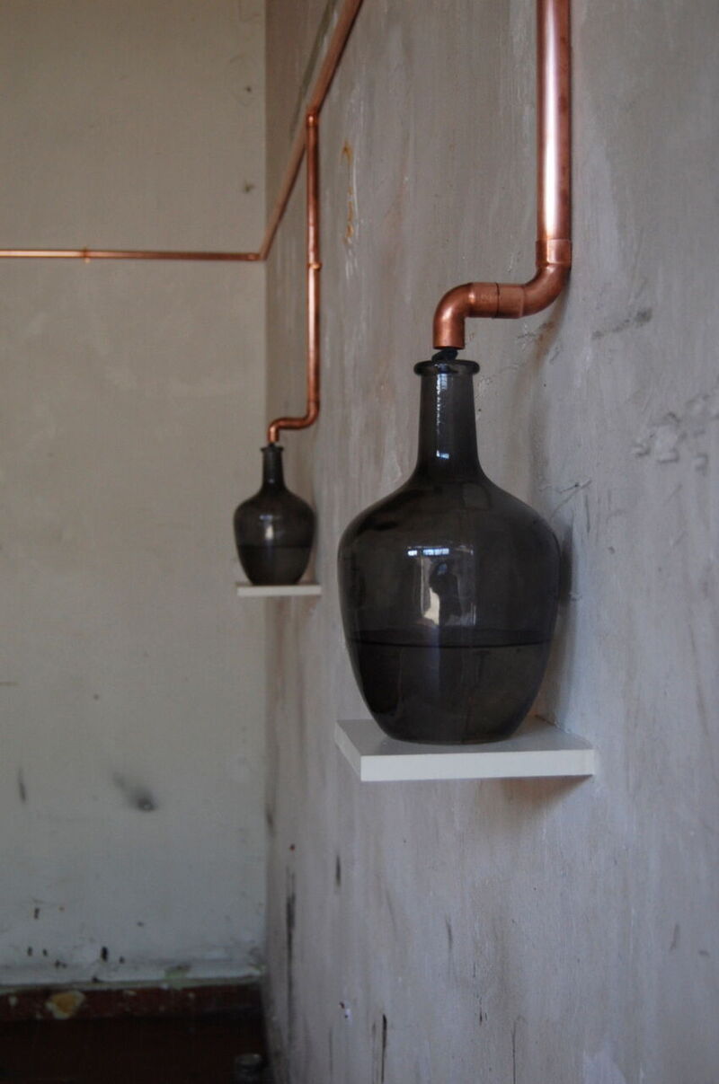 Diese Arbeit beruht auf dem Prinzip der Orgel. Der Ton entsteht hier durch die Luft selbst und ist somit eine Form der Klangerzeugung durch Luft. In der 5 KV Station wurden fünf Karaffen auf kleine Wandregale aufgestellt, das Rohrleistsystem verlief ebenfalls an der Wand und wurde durch Schellen gehalten. Zwei Lüfter, jeweils zur linken und zur rechten Seite, erzeugten die Luft, welche über das Rohrleitsystem zu den Karaffen transportiert wurde.