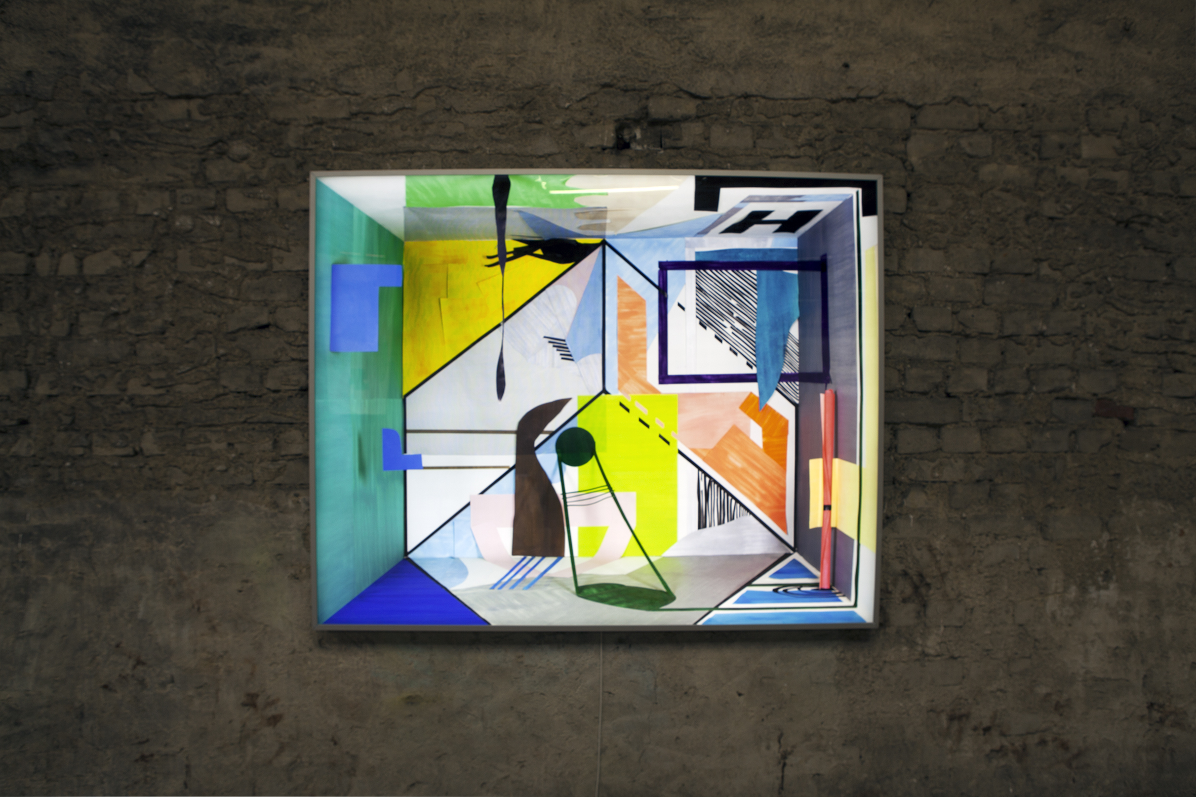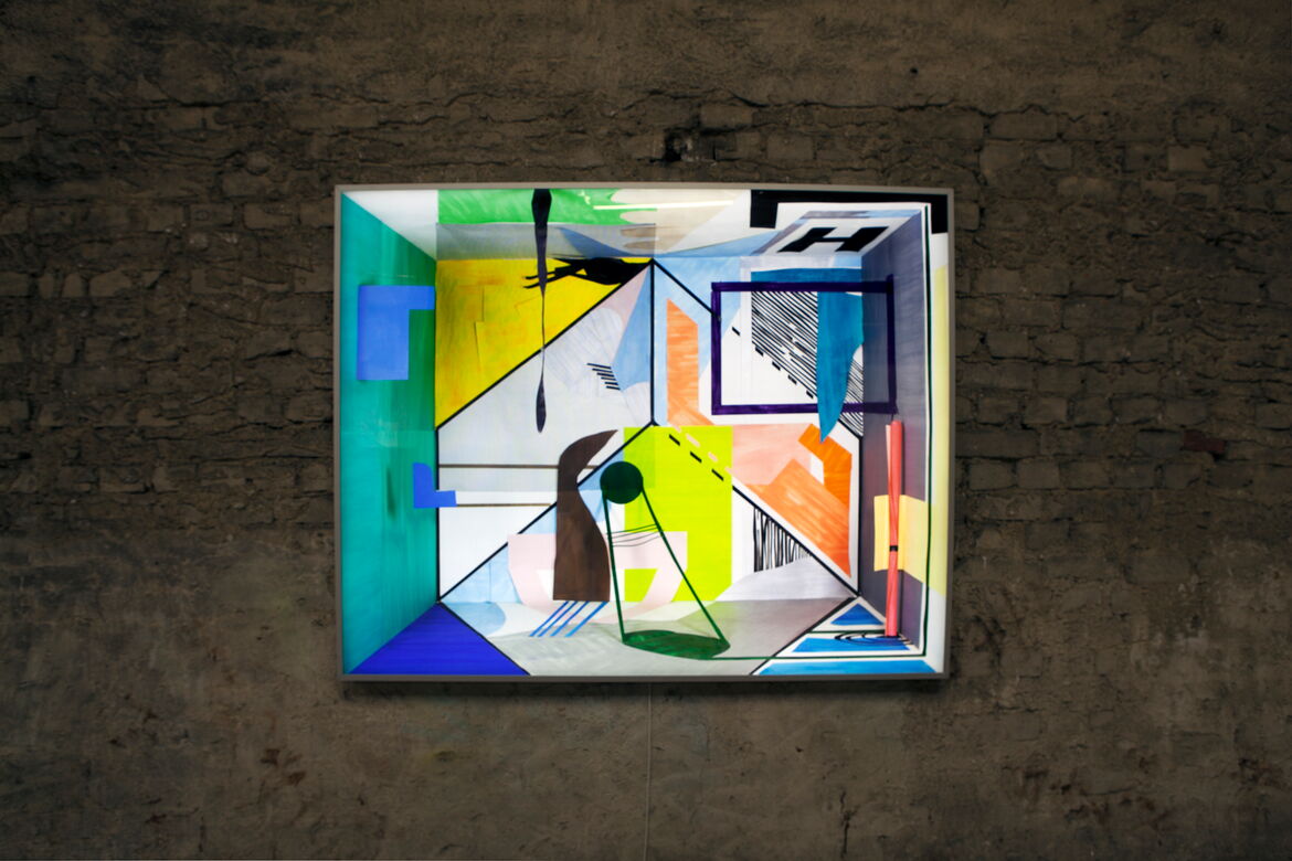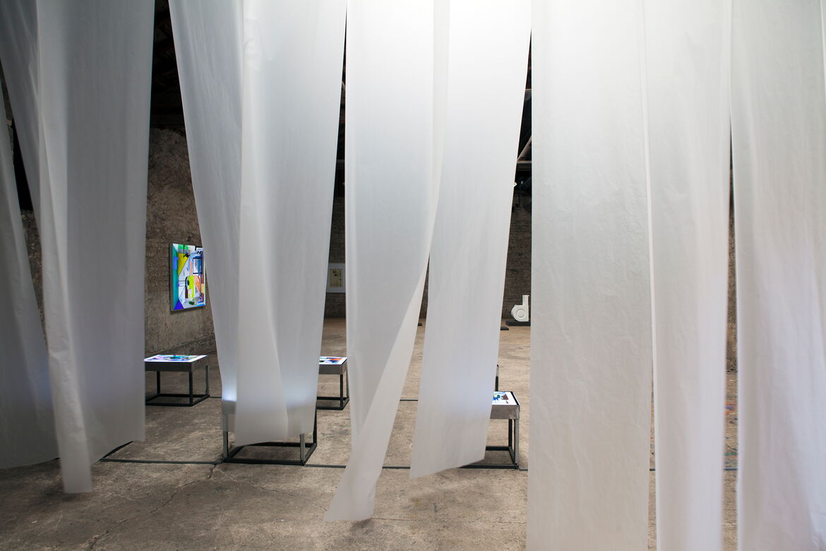 (...) Durch das Projekt, in dem ich Virtualität der affektierten Arbeit und die Produktion experimentierend untersuche, "Werkstatt für potenzielle Malerei", zeige ich wie man "constraints" benutzt. "Constraints" sind ein starkes Werkzeug, das auf Virtualität reagiert. Als ich spürte, dass die Welt meines Ateliers düster und unerträglich riesig war, baute ich eine gemütliche Werkstatt auf, um eine unangenehme Begegnung zu vermeiden. Es ist eine andere Welt im Atelier. Überraschenderweise wurde meine Handlungsfähigkeit verstärkt, da ich die Welt sowohl sichtbar als auch körperlich beschränkte. Dies ist die Hintergrundgeschichte der Geburt der "Werkstatt der Potenziellen Malerei". Nach der Gründung der Werkstatt arbeitete ich mit einigen Regeln und Konstruktionen.