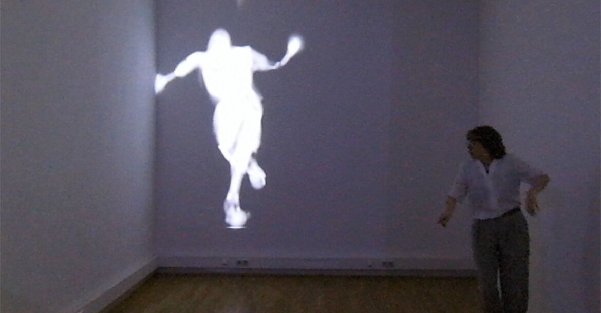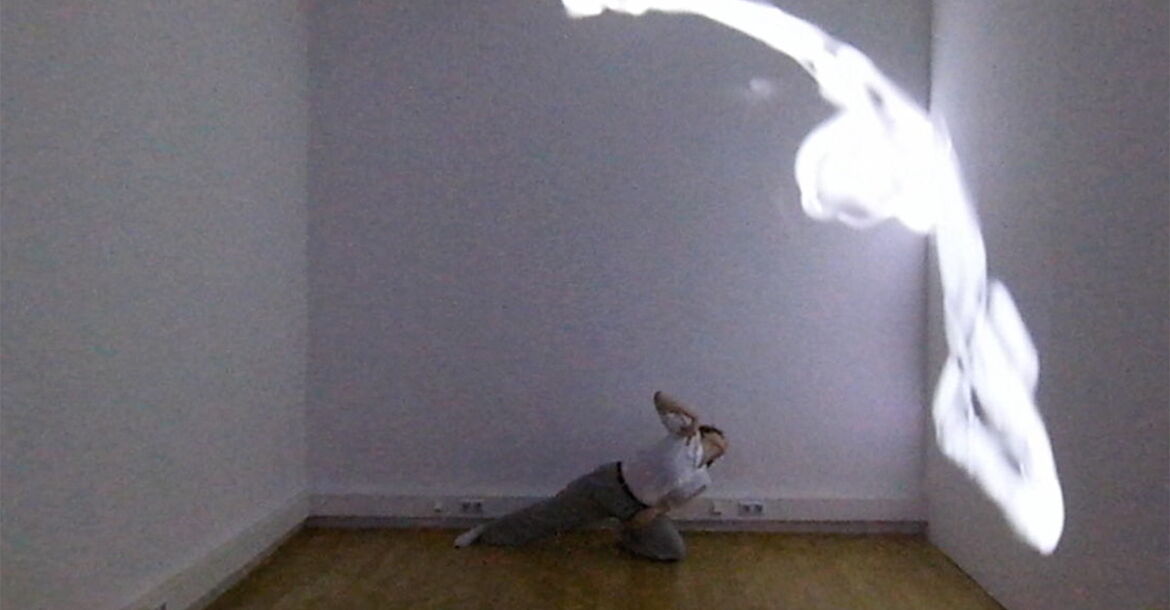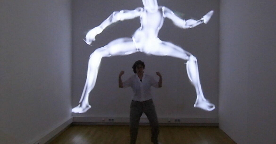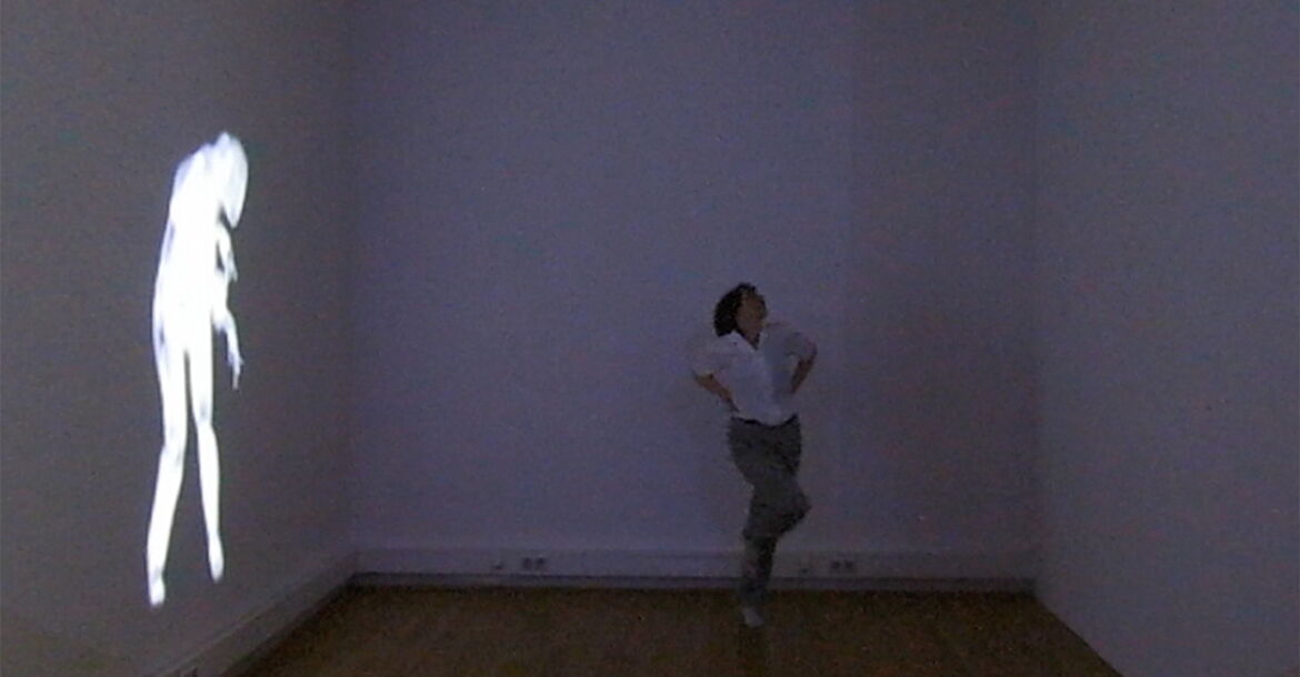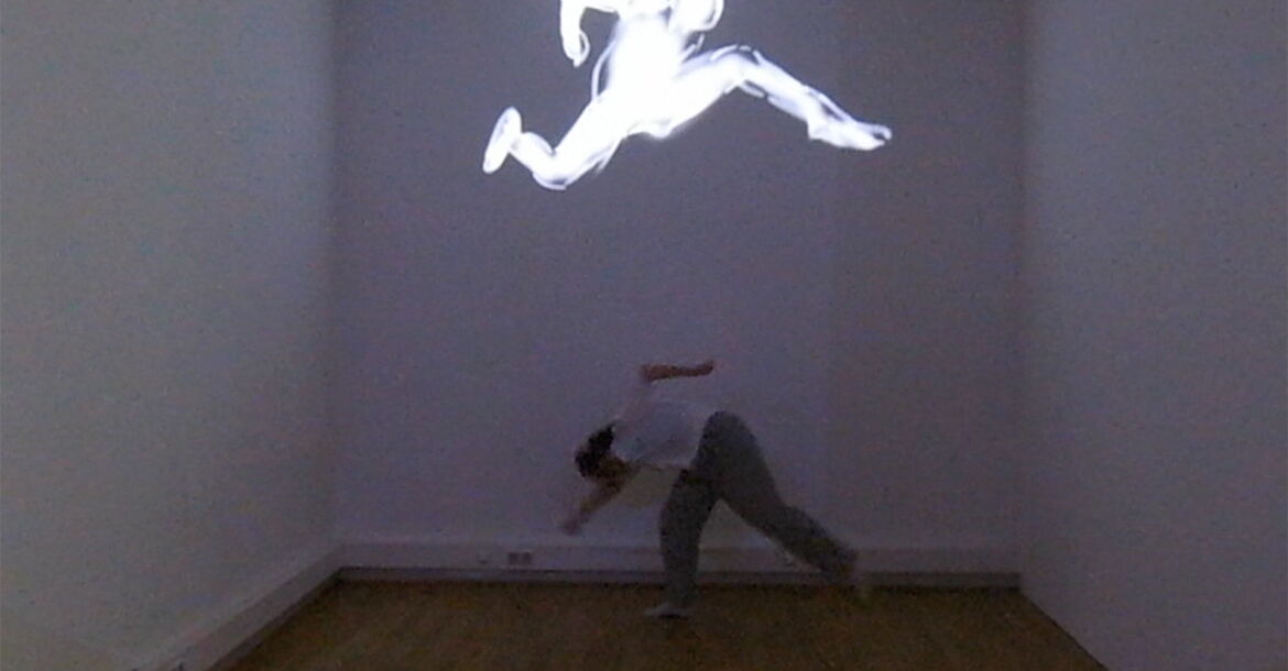 Die Projektion an den drei Wänden, welche einen Teil der Bühne dieses Stückes bilden, schafft eine direkte Interaktion zu mir als Performer. Eine geisterhafte Figur reagiert auf die Performance, bewegt sich jedoch kontrastierend. Die Übertreibung und Gegensätzlichkeit aus Gerts Werken wird in dieser Interaktion zweier Figuren, die auf unterschiedlichen Ebenen agieren, vertieft. Diese Gegensätzlichkeit findet sich auch in Gerts Leben, da sie selbst ihre schlimmsten Erfahrungen in Dinge wie politische Texte oder den Tod selbst als Pantomime verwandelte. Im Ablauf des Stückes lasse ich mich auf diese Seite ihres Lebens ein. Der Ablauf von Valeska Gerts Leben und seine Wirkung auf die Performance in der Gegenwart beleuchtet die Kraft sowie die Schwächen der Tänzerin und mir selbst als Performer.
