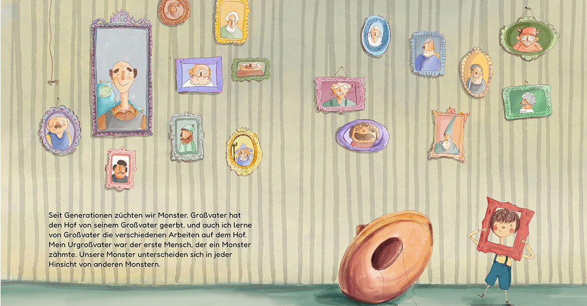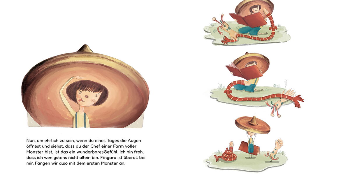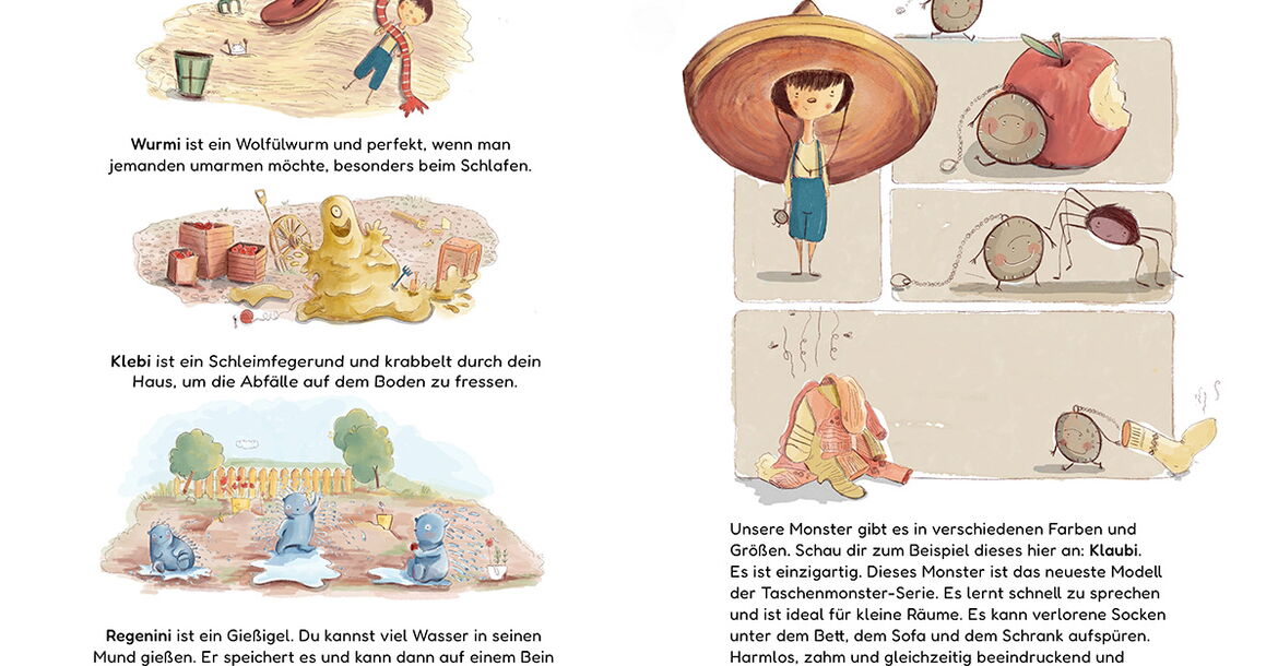 Das Finden der Namen für die Monster war sehr schwierig für mich, weil ich nicht perfekt Deutsch spreche. Ich wollte, dass die Namen lustig und kindgerecht sind. Nach vielen Überarbeitungen bin ich zu diesen Namen gekommen: