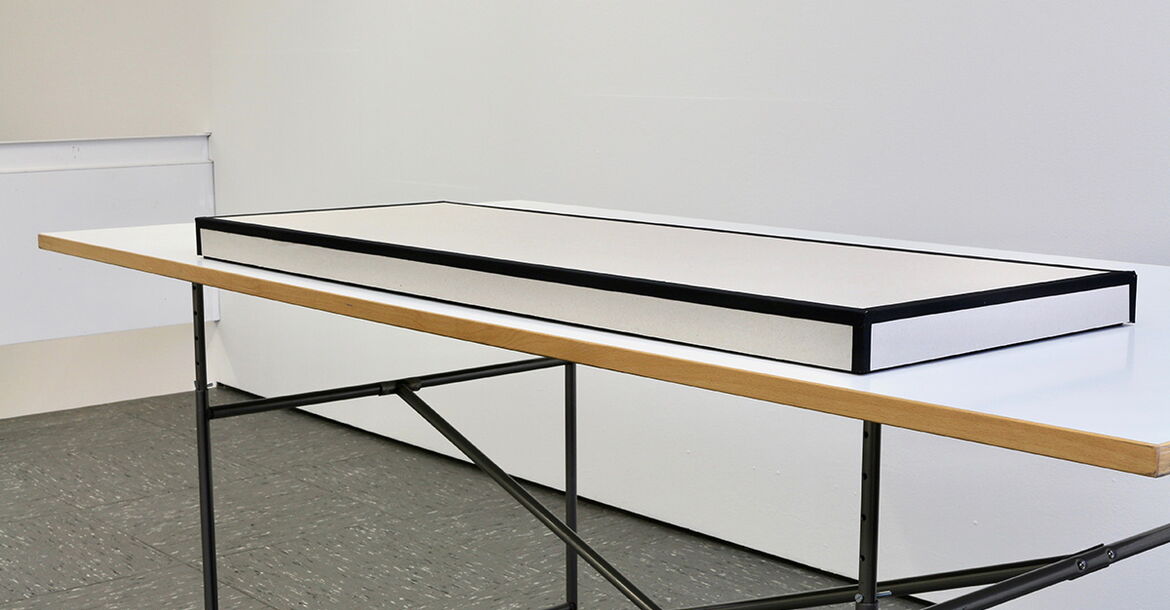 Gedanken – sie sind immer in Bewegung, auch wenn man müde und erschöpft nach Hause kommt und einfach nur sitzt und wartet, bis der Tag vorbei ist. Aus dem passiven, resignierten Warten wird ein aktives Warten. Das Verarbeiten von Situationen. Und die Gedanken werden unterbrochen von anderen Gedanken, Empfindungen, Alltag. Aber dennoch kehren sie letztlich immer wieder zu dem zurück, was gerade wichtig erscheint. Gedanken enden nie wirklich, sondern fließen grenzenlos. So lege ich für meine Arbeit eine individuelle Formatgrenze fest, die mein Körper mir vorgibt. In einem ganz eigenen Format von 118x41 cm, das ich aus meiner physiologischen Schreispannweite ermittelt habe, schreibe ich all diese Gedanken nieder.