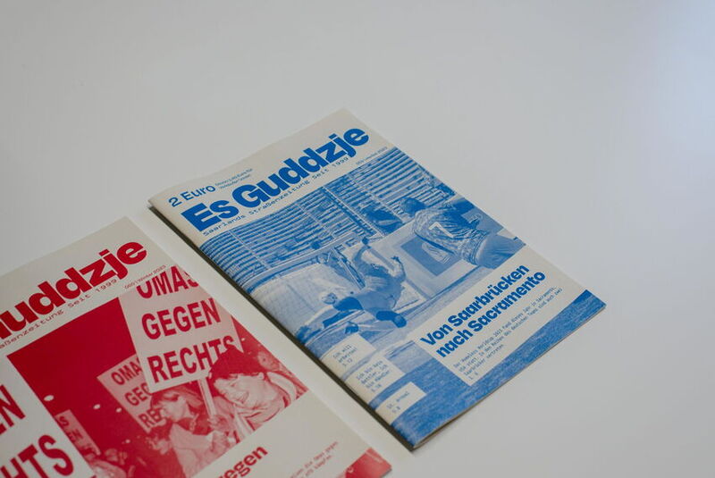 Ben Edlinger: ES GUZZJE. Eine Neuauflage der Straßenzeitung des Saarlandes, Bachelor Kommunikationsdesign, 2024, Cover der ersten beiden Ausgaben