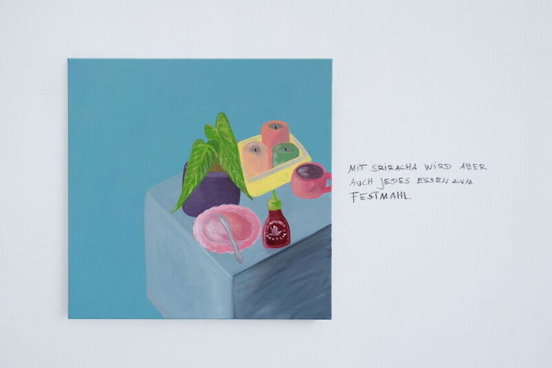 Gehen Sie weiter, hier gibt es keinen tieferen Sinn! Dieser Arbeitstitel wurde bewusst so von mir gewählt, um auf die subtile Seite von Kunst anzuspielen. Zunächst beobachte ich, schaue mir die Farben an, die Formen. Daraus ergibt sich ein Motiv, und erst dann versuche ich, dem Ganzen einen Sinn abzugewinnen. Was macht das Möbelstück oder den Gegenstand so wichtig für mich. Ich bewege mich erstmal gerne auf der Ebene der Beobachtung, um diese in ihrer einfachsten Form auf meine Bilder zu übertragen. Warum hat das Blatt einer Pflanze nicht mehr Details, warum wirft eine Vase keine Schatten? Weil diese Gegenstände in ihrer Form genauso, wie sie hier abgebildet sind, immer in meiner Wohnung sind, zu jeder Tageszeit, zu jeder Nachtzeit. Das Sonnenlicht hingegen verändert sich in jeder Stunde, jeder Minute, jeder Sekunde, die Gegenstände in meiner Wohnung jedoch nicht.
