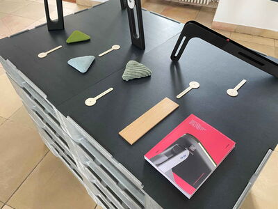Als production-on-demand Produkt erdacht, braucht man ausschließlich eine Fräse um alle grundlegenden Bauteile herzustellen. Dieser Umstand macht die Produktion kalkulierbar und sehr kostengünstig, sodass man sich auf die Qualität und Langlebigkeit der Einzelteile konzentrieren kann. Von furniert bis lackiert ist alles möglich. Lediglich ein gesperrtes Leimholz ist als Kernmaterial nötig, da Vollholz bei den unterschiedlich wirkenden Kräften aufspleißen würde.