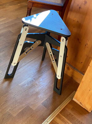 Viele sitzende Berufe haben das Problem, dass sie sich auf unseren Körper nachteilig auswirken. Das liegt einfach daran, dass der Körper auf Bewegung ausgelegt ist und nicht auf statisches Verharren in einer Position. Damit nicht nur die Symptome von schlechter Sitzhaltung durch eine scheinbar optimale Rückenlehne adressiert werden, habe ich mir einen Hocker überlegt, der geführt mit einem Rollensystem, zum einen eine Stützung der Haltung ermöglicht, eine leichte Kippung des Beckens nach vorne zulässt und zum anderen die Sitzbeinhöcker stets auf gleicher Höhe hält, um einem Beckenschiefstand entgegenzuwirken. So werden durch Sitz-Routine die richtigen Muskeln trainiert, die Körperhaltung stabilisiert und zusätzlich Fehlhaltungen und Verspannungen vorgebeugt.