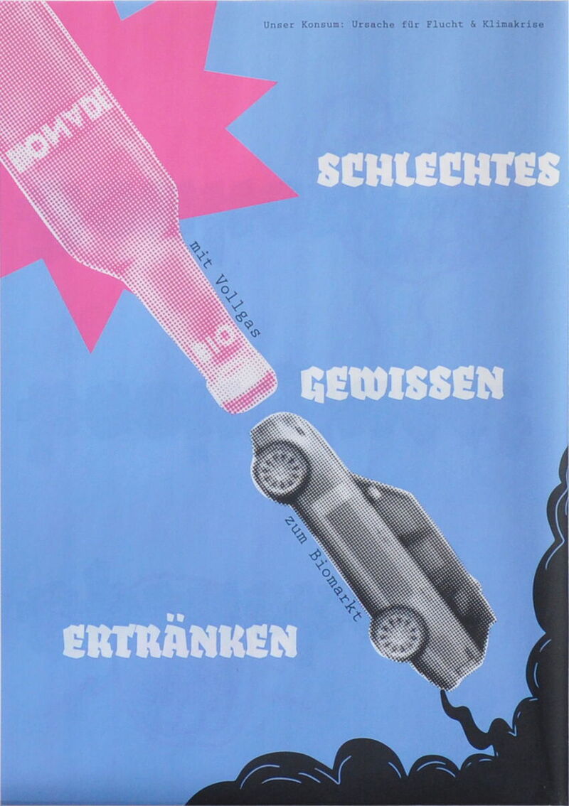 Wie werden Menschen angeregt über herrschende Ungerechtigkeiten nachzudenken und nicht abgeschreckt, belehrt oder gelangweilt? Und wie erreichen diese Botschaften die Politik? Wie funktioniert erfolgreicher Protest überhaupt? Ich habe zahlreiche Ideen gesammelt und anschließend die mir wichtigsten versucht, passend zu visualisieren. Das Endergebnis sind 22 Plakate und Flugblätter, die als Zeitung kompakt zusammengefasst sind. Die Motive sind komplett analog und können direkt weiter verbreitet werden – ob plakatiert auf den Straßen oder als Schild auf Demonstrationen. Vorteil des analogen Mediums „Die Lupe“ ist, dass diese nicht einfach und schnell ausgeschaltet, weggeklickt oder eben weitergescrollt werden kann. Die Motive haben einen provokanten, humorvollen und emotionalen Charme bekommen, um so einen leichteren Einstieg in die Problematiken zu ermöglichen.