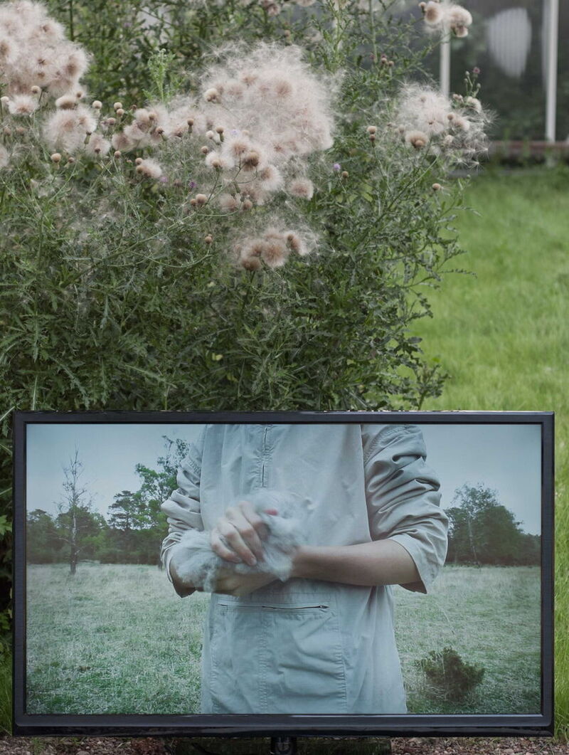 Im Video gibt die Stimme einer jungen Frau einen historischen Überblick von der Entstehung dieser Landschaftsform bis zu ihrer Verdrängung. Ausführlich begegnet der Körper der Frage, wie sich die Landschaft neu angeeignet werden kann. Ein alternatives Landschaftsverständnis ist eines der körperlichen Beziehung zum Raum, zu den Dingen und Bedingungen. Dieses Verständnis erkennt individuelle physische Erfahrungen an und erhält gerade dadurch einen universellen Wert. Der Körper befindet sich in dem Zustand, den das Bild evozieren will: Er ist dort – in der offenen Landschaft, umgeben von Licht- und Witterungsbedingungen. Unterarme und Hände erhalten in waagerechter Position auf Höhe des Horizonts selbst Landschaftscharakter. Vor dem Anorak, der Informationen aus der Landschaft auf den Körper überträgt, heben sich Haut und Wolle ab. Der Taktilitätsaspekt, der vom visuell dominierten, komponierten und technisch realisierten Bildkonzept bedroht wird, rückt in den Fokus: Der Kontakt mit dem Material Wolle aktiviert und verändert das Haut- und Körperempfinden. Er erzeugt eine Liminalitätserfahrung am Übergang zur Landschaft. Die Wolle ist landschaftliches Material. Die Anwesenheit der Schafe prägt die spezifische Hutungslandschaft im Video. Die Flächen gehören heute zu einem Landschaftspflegehof und werden mit Gotlandschafen beweidet. Anders als moderne Schafrassen müssen sie nicht geschoren werden, sondern wechseln ihre Wolle. Sie verbleibt in der Landschaft oder wird, wie die kardierte Wolle im Video, verarbeitet.