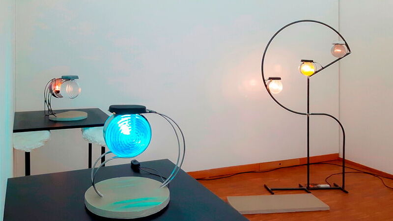 Entstanden ist hieraus eine Neuinterpretation historischer Glas‐Licht‐Elemente. Wobei die physikalische Lichtwandlung der so genannten Schusterkugel und der Fresnellinse miteinander kombiniert werden.