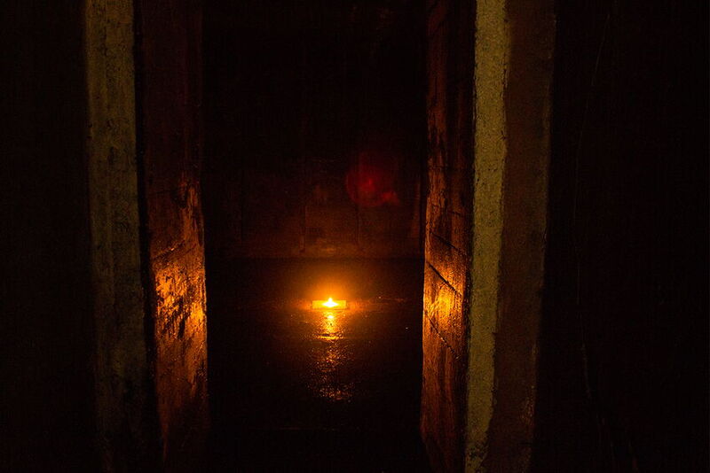 Die besonders feuchte und kalte Luft im Bunker wirkt sich auf den Körper aus - es wird kalt. Der Rahmen des Wahrnehmungsspiels wird von Dunkelheit umfasst. Die heiße Luft des Hochsommers wird von dem kühlen Bunker durch einen schwarzen Moltonvorhang getrennt. Eine Flamme, die inmitten der zentralen Kammer des Bunkers brennt, erleuchtet in einem fluktuierenden Rhythmus das Innere. Sie bringt neben dem Licht auch Wärme und Lebendigkeit herein. Das Aussehen des Bunkers weist auf die Vergänglichkeit und somit letztlich auf die Zeit selbst hin. Hier und da schlagen sich zarte Wurzeln von Pflanzen durch den Beton, das verbaute Metall rostet, die Kondenswassertropfen folgen der Schwerkraft und bilden weiße Stalaktiten.