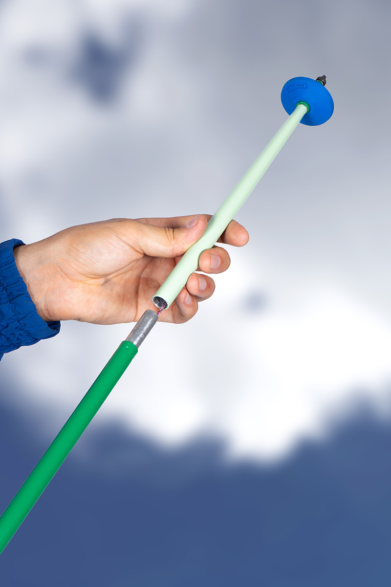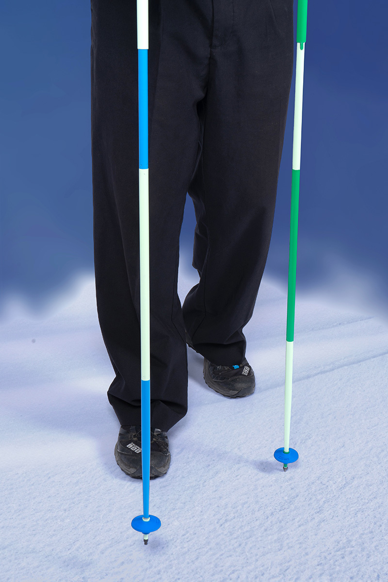 Welche Potentiale eröffnen Volunteering, Sharing-Systeme und Geotracking, um Outdoor-Reisen neu zu denken? ON MY WAY besteht aus zwei Konzepten zum nachhaltigen und bewussten Tourismus in Bergregionen. Mit PING, einem datensammelnden Wearable, unterstützen Reisende Forschungsinstitute und Umweltschutzorganisationen beim Schließen von Data Gaps zu Regen- und Schneefallmustern oder der Wolkenbildung. POLES sind Trekking- und Skistöcke speziell für Verleihsysteme, deren Verschleißteile dank reversibler Verbindungen und einem speziellen Verbindungsstück werkzeugfrei vor Ort austauschbar sind.