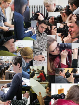 Bereits im Wintersemester 2008/09 zeichnete und fotografierte eine Gruppe von zehn Studierenden eine Spielzeit lang Musiker der Deutschen Radiophilharmonie Saarbrücken Kaiserslautern während der Orchesterproben. Unter dem Motto »Konzentration, Spannung – Entspannung« illustrierten die entstandenen Arbeiten die Programmbroschüre 2009/10 der DRP und wurden mehrmals ausgestellt.