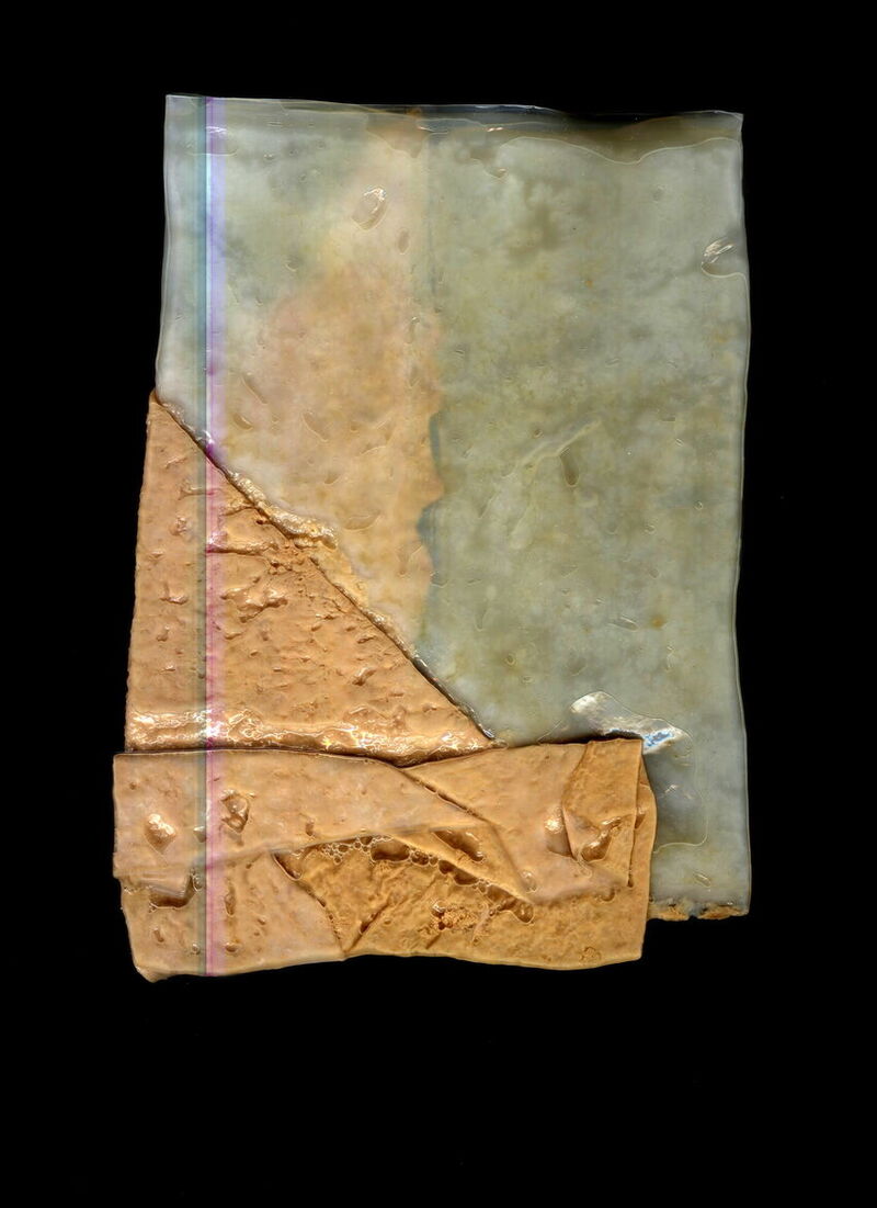 Die Arbeit Pilzfilm ist eine Mixed Media Installation mit Elementen aus den Bereichen Fotografie, Keramik, Video, Pflanzen und Pilzen. Die Installation dokumentiert die Beschäftigung mit dem Kombucha-Pilz, der seit 2017 dauerhafter Bewohner meines Ateliers ist. Sie besteht aus zwei Bereichen: Einem Tisch, mit den darauf platzierten Objekten und einem Raum, in dessen Mitte der Pilz in einem Aquarium ausgestellt ist. Im abgegrenzten Raum ist es möglich, dem Pilz zu begegnen. Er wurde beim Bezug der Räumlichkeiten in frischer Ansatzflüssigkeit bestehend aus Tee und Zucker platziert und bildet seit dem einen zarten Film an der Oberfläche. Er ist das einzige Objekt im Raum und befindet sich auf einem von unten beleuchtetem Sockel. Beim Betreten des Raums lässt sich der säuerliche Geruch wahrnehmen, den die Flüssigkeit verströmt. Durch die Beleuchtung ist das Gewächs deutlich Sichtbar. Im großen Ausstellungsraum ist ein fast sechs Meter langer Tisch aufgebaut, dessen Architektur sich den räumlichen Gegebenheiten anpasst. Auf ihm platziert sind direkte bildhafte Ergebnisse aus der Arbeit mit dem Pilz, wie das Pilztuch und gepiercte Pilzhaut, sowie Objekte, die gedankliche Berührungspunkte zu aufkommenden Themen wie Wachstum, Ekel, Symbiose und Berührung, darstellen.