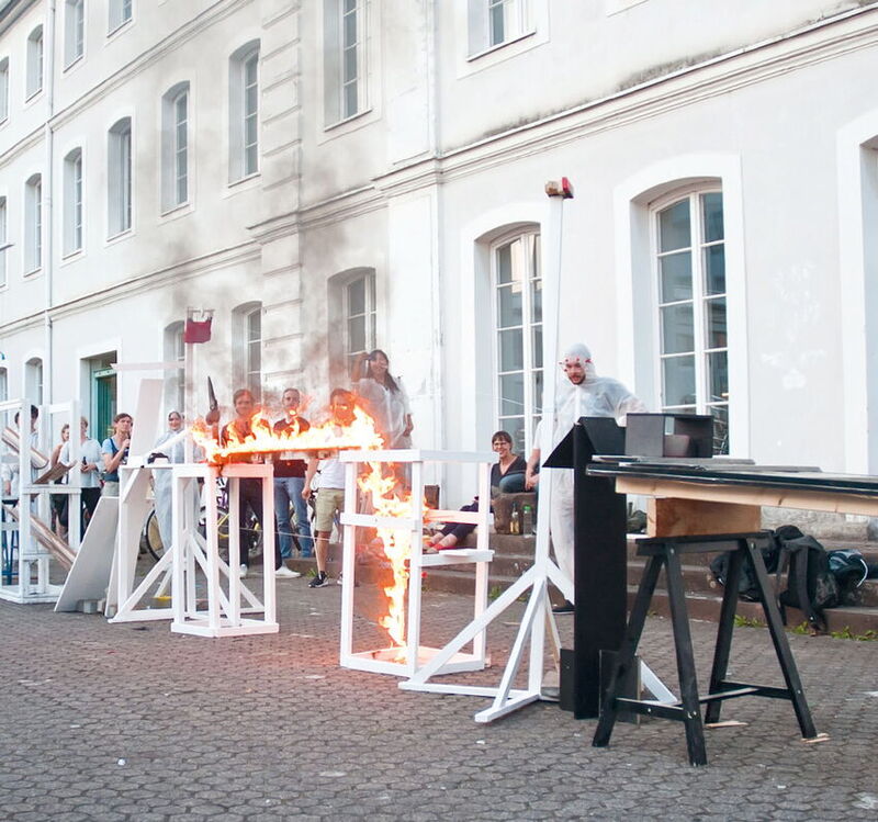 Eine Rube-Goldberg-Maschine ist eine Nonsens-Maschine, die eine bestimmte Aufgabe absichtlich in zahlreichen unnötigen und komplizierten Einzelschritten ausführt. Rube Goldberg 2.0 stand in diesem Projekt für die Aufgabenstellung, mit mechanischen Designobjekten eine kollektive Kettenreaktion auszulösen. Das Projekt war besonders empfohlen für Studierende im 2. Semester und diente der Repertoirebildung im Kontext der Kernthemen Funktion, Ästhetik und Symbolik. Die Studierenden übernahmen in Teams die Verantwortung für jeweils eine Etappe in der Kette und setzten sich so intensiv mit den Parametern Funktion, Mechanik, Farbe, Klang und Charakter des zu gestaltenden Objekts auseinander.
