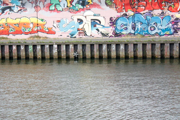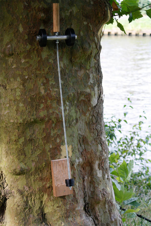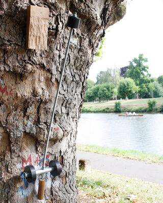 Die erste: Hier gibt es eine sogenannte Graffiti Wall. Das heißt eine Wand wo Wandmalerei legal ist. Diese Wall liegt direkt unter einer Autobahn und über der Saar. Ein Ort wo dringend klangliche Interventionen von Nöten sind. Ich bin dort häufig vorbeigegangen und habe die jungen Graffitikünstler schon von weitem gehört, mit dem Gerappel ihrer Dosen. Dieses Geräusch greife ich in meiner Arbeit auf. Ich nehme leere Spraydosen und baue aus ihnen eine Art Mühlrad. Dieses wird dann am Wasser befestigt. Durch die Strömung wird sich das Rad ständig drehen, so das die Dosen ständig Rappeln. Als wären fleißige Sprüher Tag und Nacht vor Ort am Arbeiten.