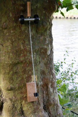 Lediglich andere Sprayer oder die Stadtreinigung kommen irgendwann und entfernen die Arbeiten. Und dahin möchte ich mich mit S.I.P.S bewegen. Wie kann ich Klang erzeugen, ohne Strom. Ich brauche also irgendetwas, das klappert, das rappelt das pfeift. Ich muss es so aufhängen, dass es möglichst schwierig zu entfernen ist. Also auf Dächer, schwer erreichbare Orte oder mit jeder Menge Kleber. Und zu guter letzt muss die Arbeit auch so gebaut sein, dass Sie robust genug ist, Wind und Wetter zu trotzen.