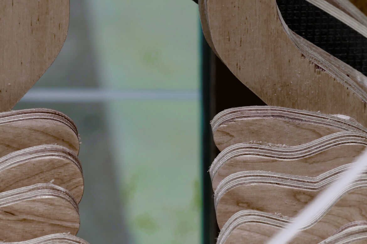Formal sind die Körper, die an Gefäße erinnern, aus Einzelteilen gefügt, aus Materialien, die aus dem Baustoffhandel genommen sind und eine Bearbeitung durchlaufen haben. Anfänglich steht die Skizze einer Vase, die handzeichnerisch in Schichten dekonstruiert wird, die, einem Gitter gleich, mit Abständen versehen eine räumliche Struktur ergeben. Die Handzeichnungen wurden digitalisiert, weiter am Computer bearbeitet und über eine CNC-Fräse in Multiplex Birke dargestellt. Durch die direkte Übertragung der analogen Handzeichnung in die digitale Darstellung der CNC-Fräse bleibt der zeichnerische Duktus in der Plastik erhalten.