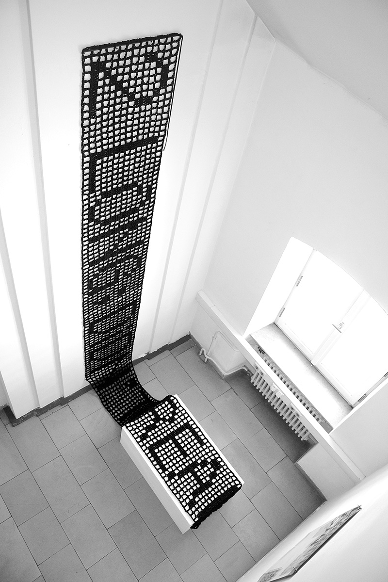 Mit dem Projekt Stitch + Type: Moderne Schriftgestaltung im Kontext traditioneller Häkeltechniken wurden zwei unterschiedliche Ansätze der Schriftgestaltung untersucht und gestalterisch neu interpretiert. Wo liegt die Schnittstelle zwischen traditionellen Handarbeitstechniken und neuzeitlichen Typedesigns? Wie ist es möglich, den Vorgang des sogenannten Filethäkelns in die Gegenwart zu übersetzen? Wie kann eine Häkelarbeit als Medium für die visuelle Kommunikation genutzt werden?