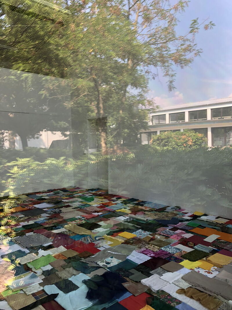 Diese Arbeit besteht aus der dreißig Jahren alten, textilen Sammlung der Mutter der Künstlerin, die nach der Ausstellung wieder zurück in ihren Urzustand zurückgeführt wurde. Die Arbeit bildet einen temporären Zustand des Sortierens, Umwälzens und Überdenkens ab.