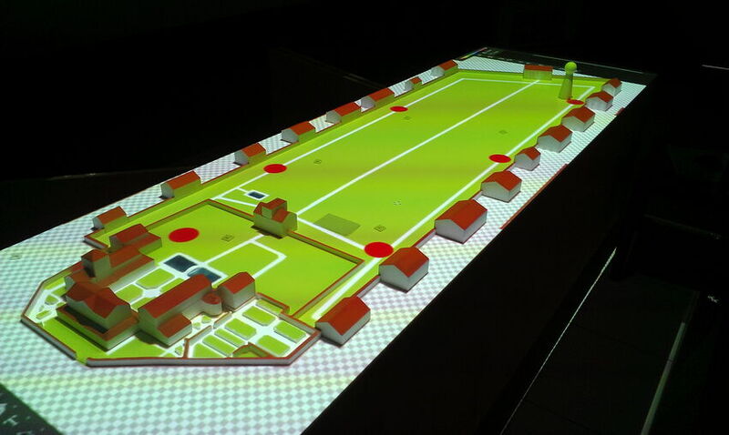 Für den Medienraum der Villa Borg wurde ein interaktives Tischmodell entworfen und gebaut (s. Fotos). Ein Decken-Projektor wirft ein Bild auf das Modell und 8 RFID-Reader sind unter dem Tisch angebracht, so dass an diesen Stellen erkannt werden kann, welcher RFID-Chip (zB unter einer Figur) an diesen Stellen steht.